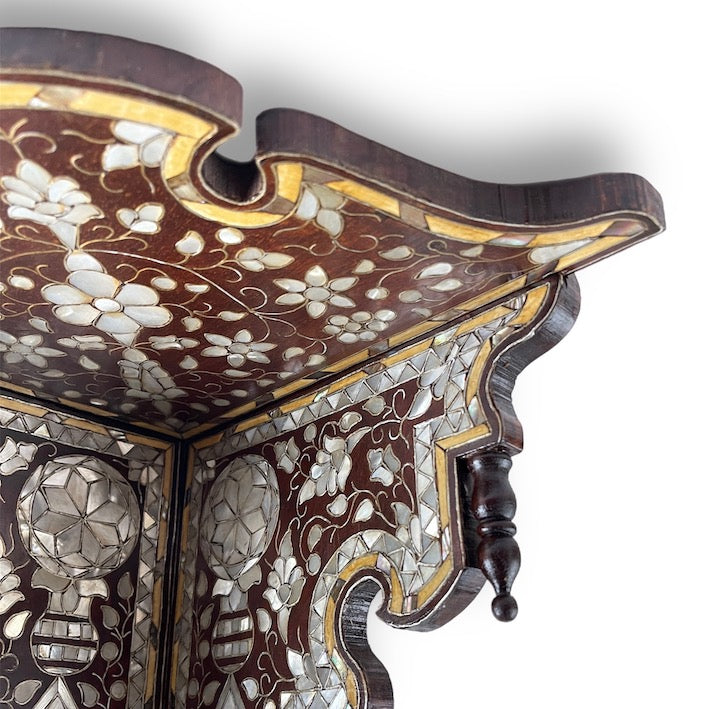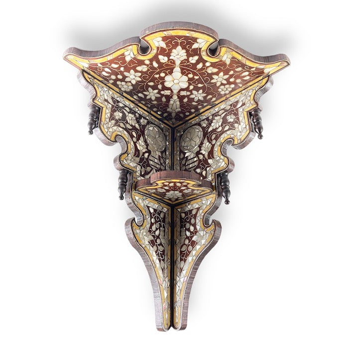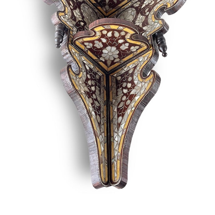 Ceiling corner shelf with mother of pearls and brass inlay 40.5 x 27.5 x 27.5cm